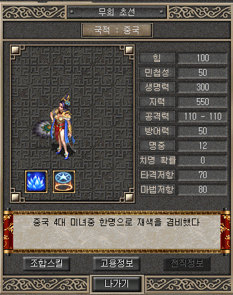 무희 초선 외형 및 필요 재료와 필요 장수들입니다.